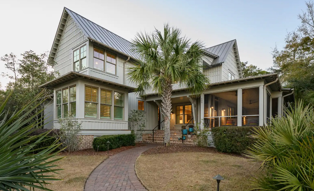 Contemporary and Comfortable: 63 Marsh Rabbit Street Outdoor living takes center stage with a broad screened porch that opens fully to the main living area through a multi-slide wall of glass, creating seamless year-round flow. The space extends into a priv...